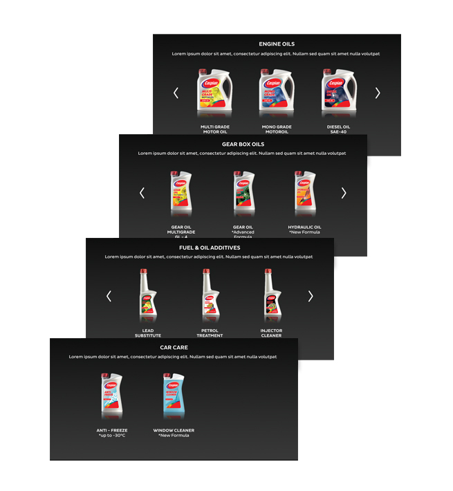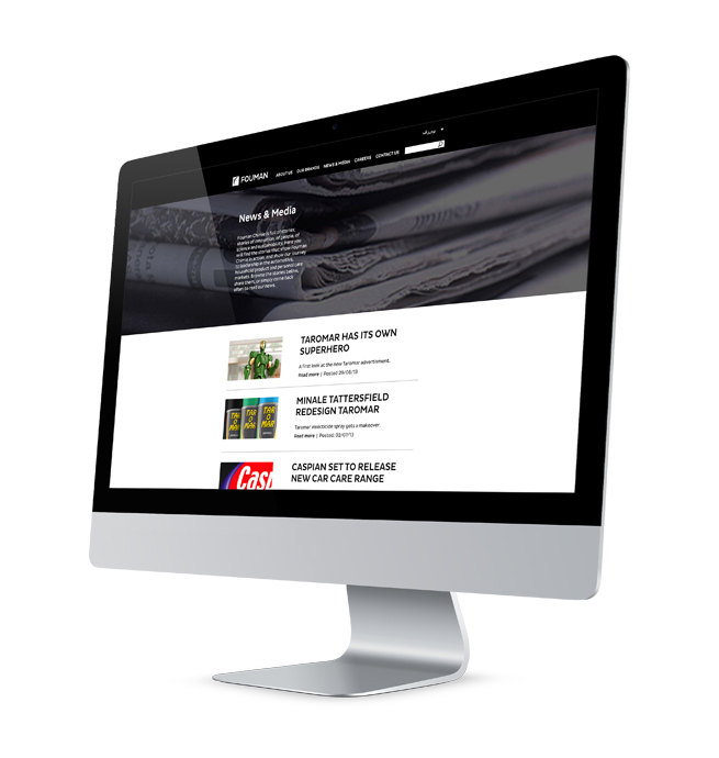 A clean and minimalistic landing page allows you to quickly navigate through Fouman Chimie’s product portfolio. Products can be viewed and reached through a product category (automotive, personal care and household) or featured brand.