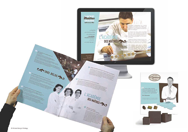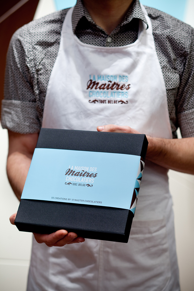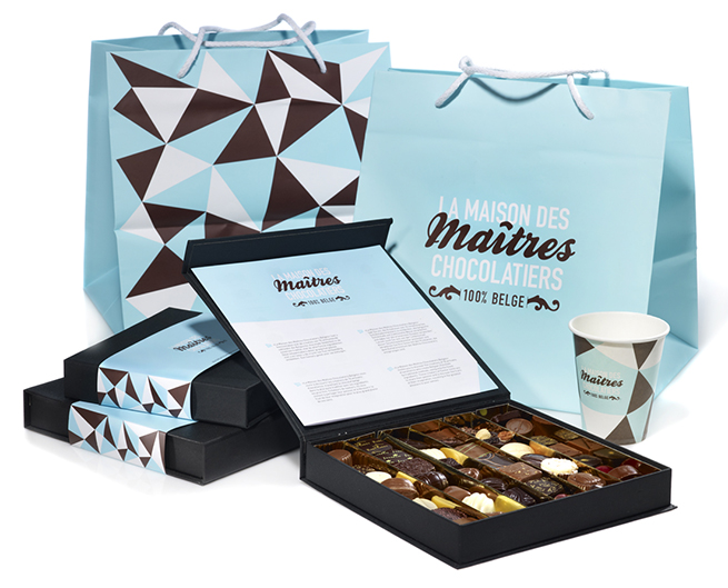 The name created ‘La Maison des Maîtres Chocolatiers Belges’ is a grand name for a prestigious concept. The identity and accompanying design elements communicate luxury and simplicity at the same time. The colour palette of light blue, brown and white has a light touch, while the geometrical shapes have an intricacy suggesting expertise and accomplishment.